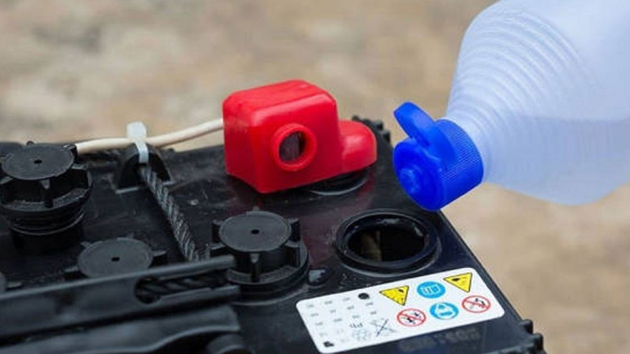 अगर इलेक्ट्रोलाइट लेवल मिनिमम निशान से नीचे चला जाता है, तो तुरंत डिस्टिल्ड वॉटर डालना चाहिए।